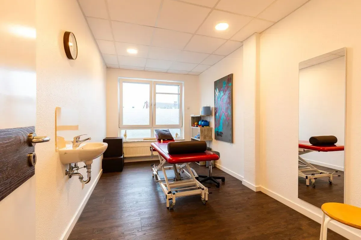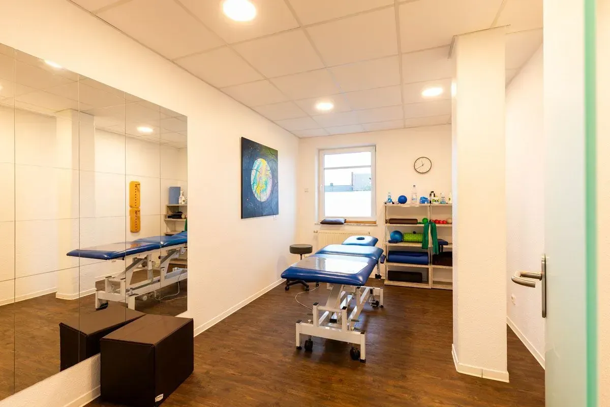 Unsere hellen Behandlungsräume und die großzügige Trainingsfläche bieten ideale Bedingungen für Ihre Therapie.